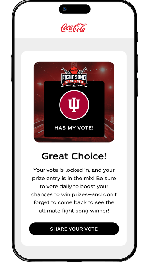 The Coca-Cola Fight Song Face-Off invited fans to listen, vote, and crown the ultimate anthem, transforming school spirit into an interactive ritual that drove repeat engagement and rewarded fans with chances to win, all while positioning Coca-Cola Zero Sugar as the refreshment that keeps you going through every moment of Madness.